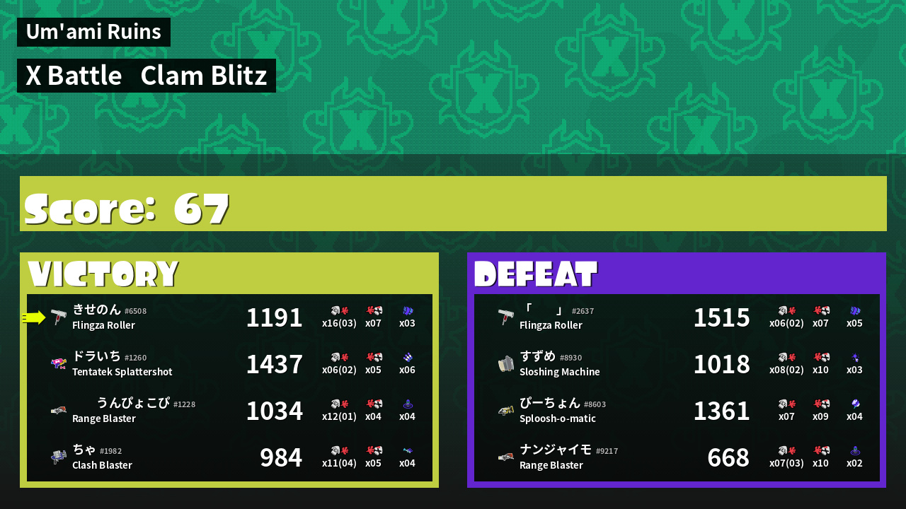 | Weapon | Flingza Roller ( Ink Mine / Tenta Missiles) | ||