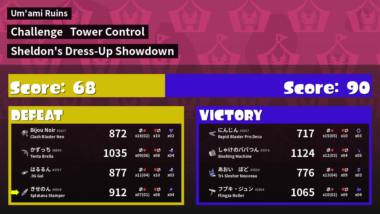 | Weapon | Splatana Stamper ( Burst Bomb / Zipcaster) | ||