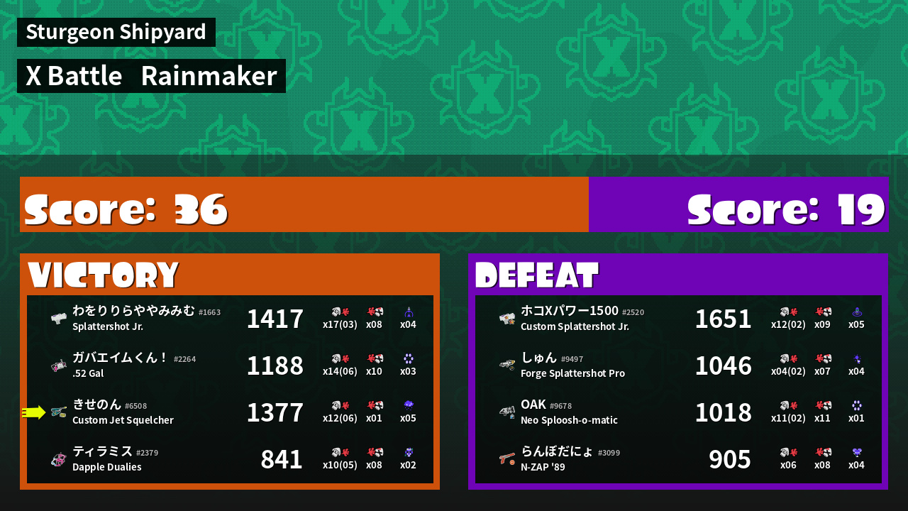 | Medals | #1 Super Jump Spot #1 Splat Assister #1 Rainmaker Carrier | ||