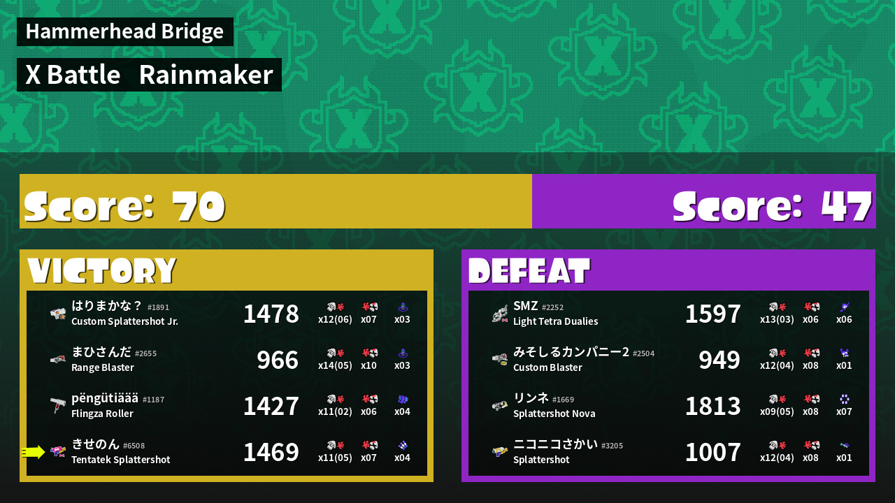 | Mode | Rainmaker - X Battle | ||
