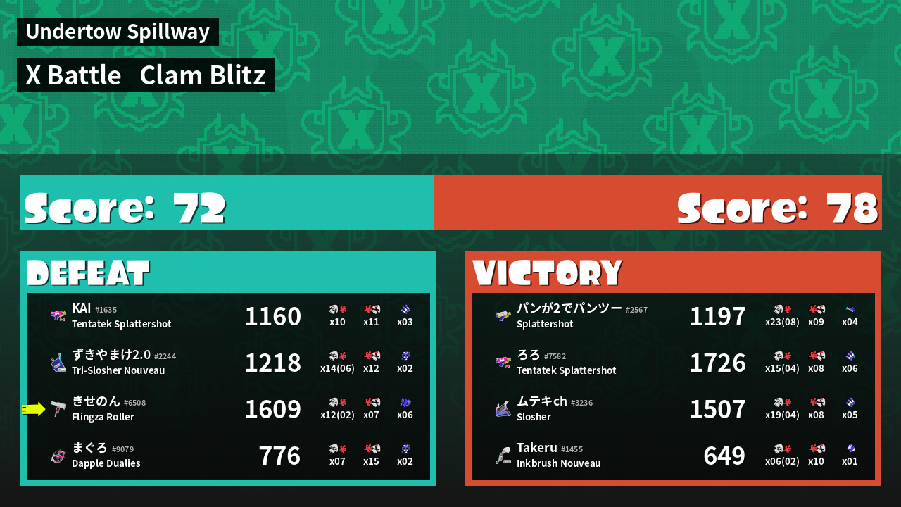 | Medals | #1 Turf Inker #1 Enemy Splatter #1 Ground Traveler | ||
