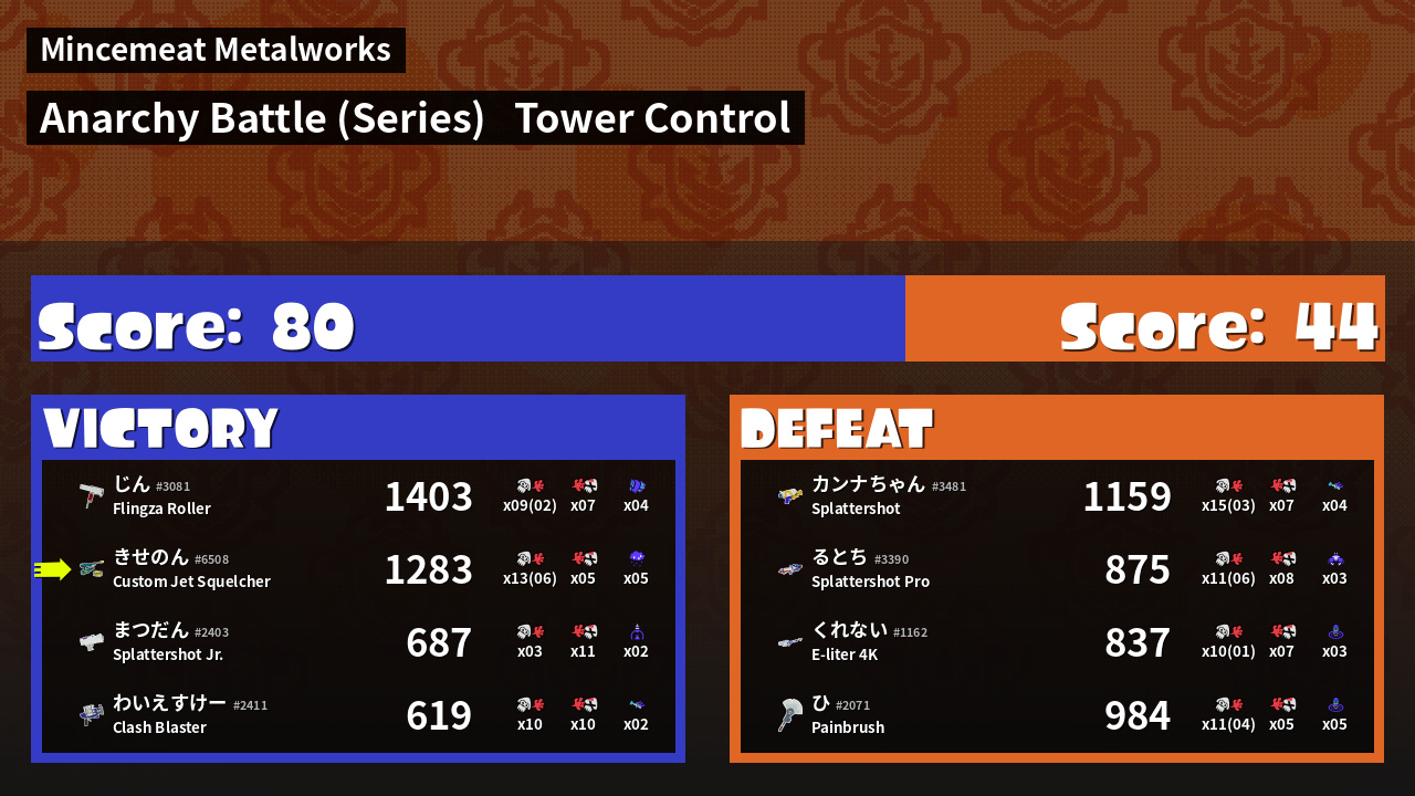 | Medals | #1 Overall Splatter #1 Splat Assister #1 Tower Stopper | ||
