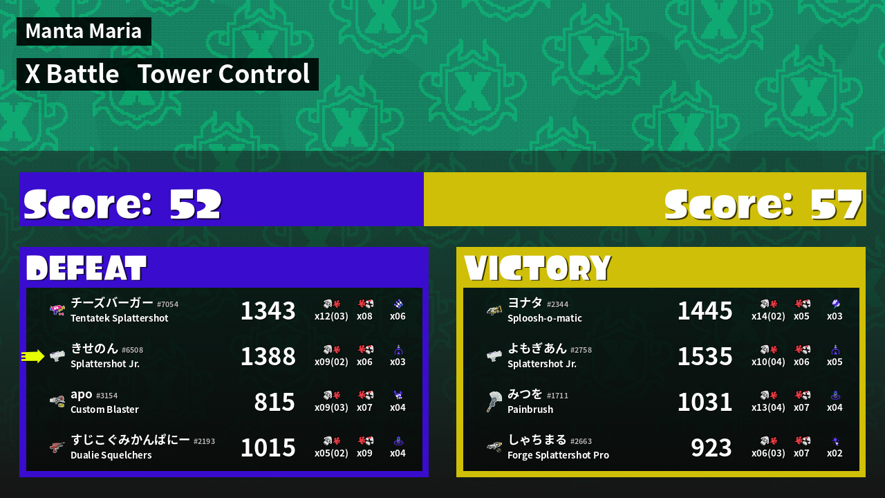 | Mode | Tower Control - X Battle | ||