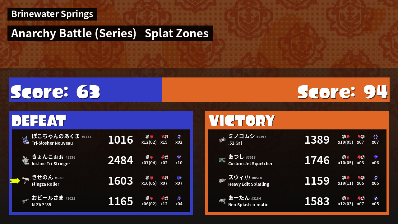 | Mode | Splat Zones - Anarchy Battle (Series) | ||