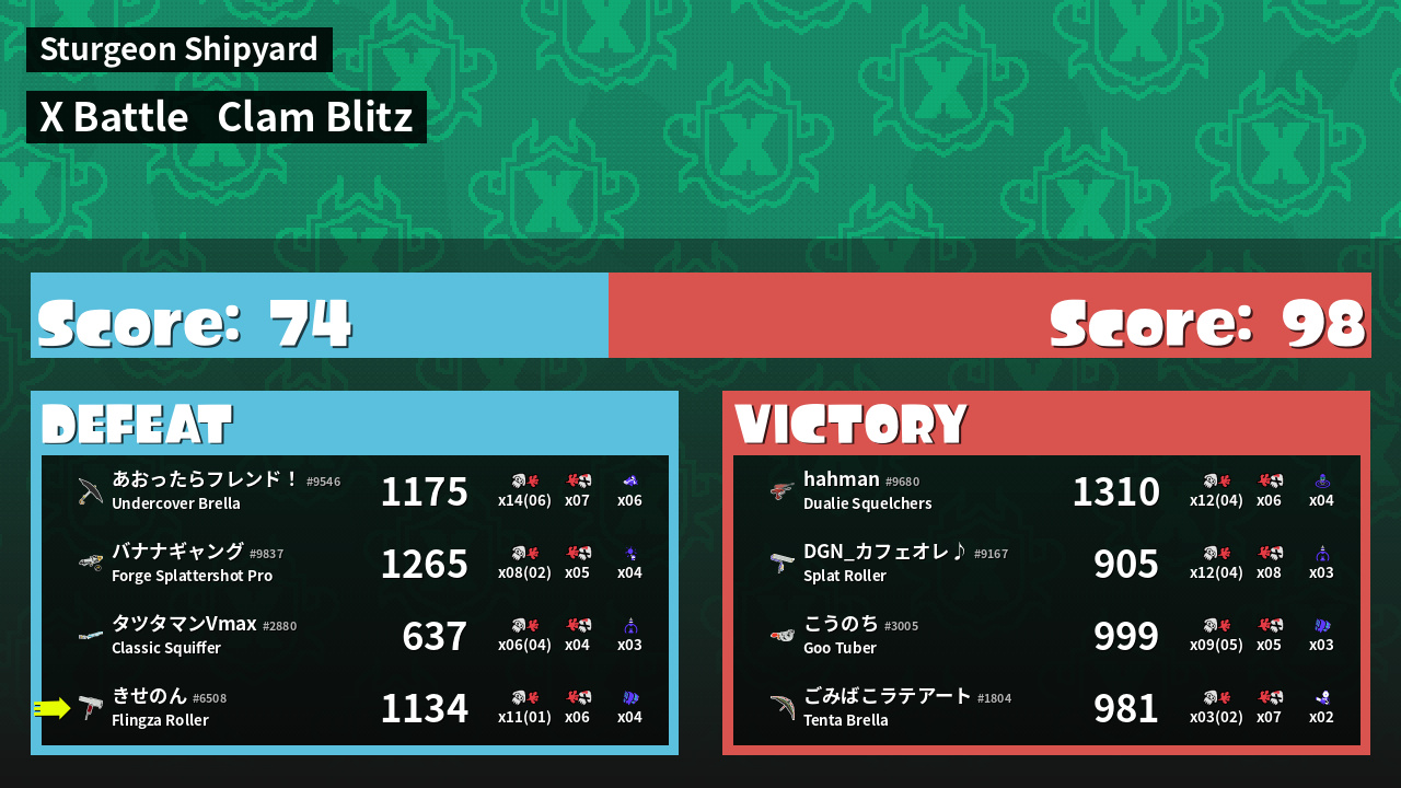 | Weapon | Flingza Roller ( Ink Mine / Tenta Missiles) | ||