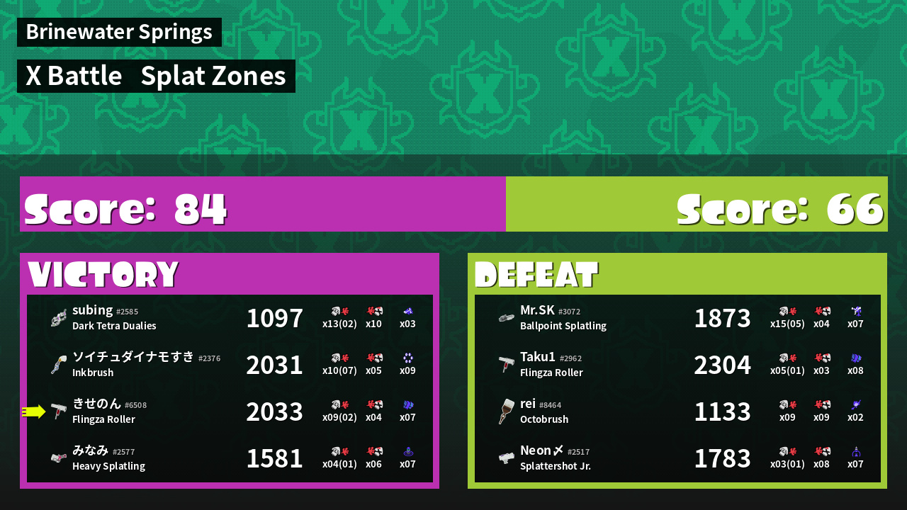 | Mode | Splat Zones - X Battle | ||
