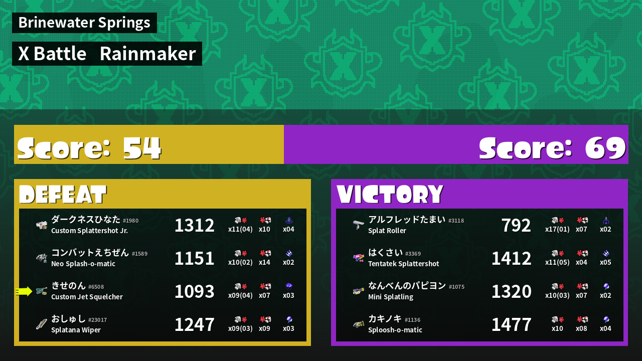 | Medals | #1 Splat Assister #1 Rainmaker Stopper #1 Ink Storm User | ||