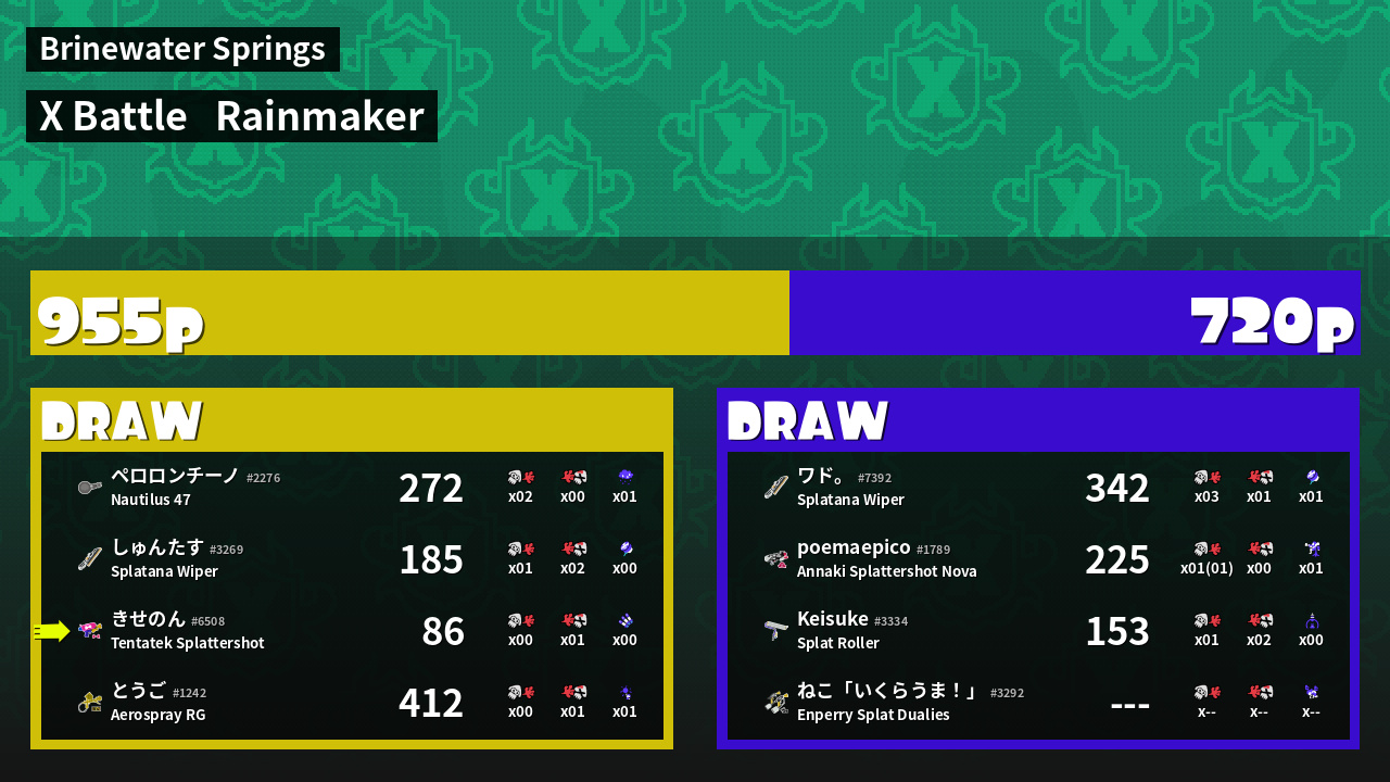 | Weapon | Tentatek Splattershot ( Splat Bomb / Triple Inkstrike) | ||