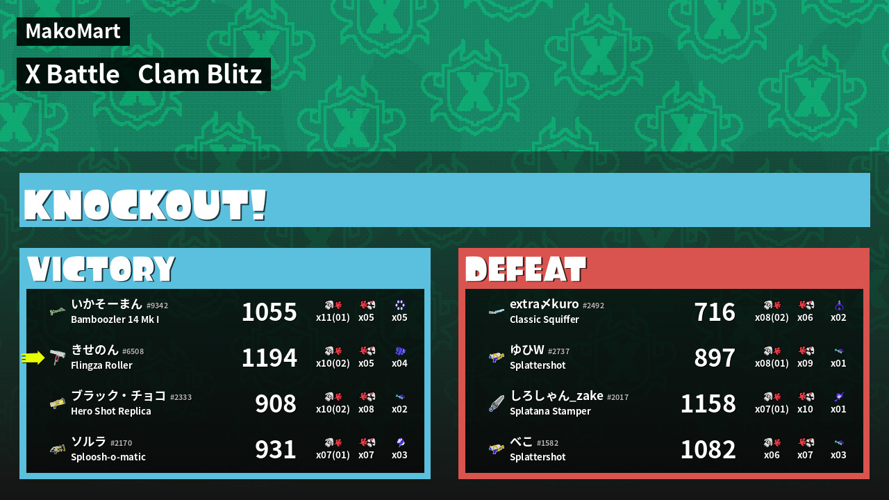 | Mode | Clam Blitz - X Battle | ||