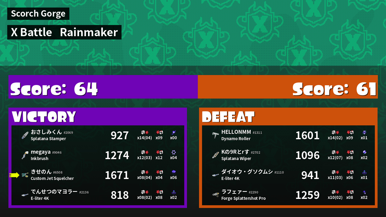 | Medals | #1 Turf Inker #1 Splat Assister #1 Ink Consumer | ||