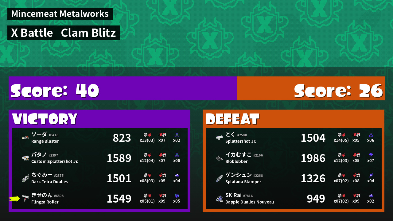 | Weapon | Flingza Roller ( Ink Mine / Tenta Missiles) | ||