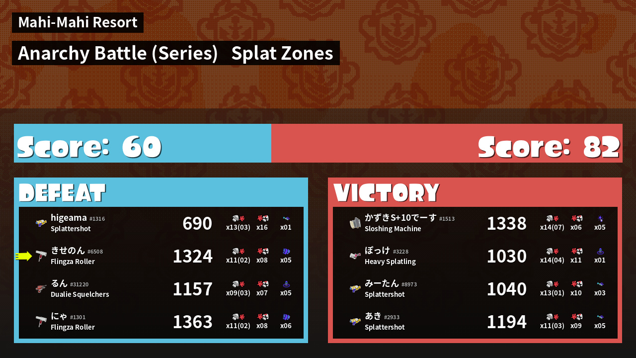 | Mode | Splat Zones - Anarchy Battle (Series) | ||