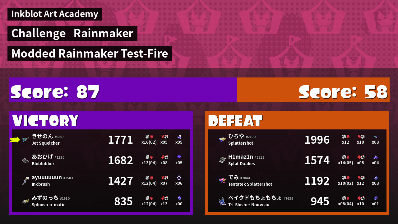 | Medals | #1 Overall Splatter #1 Score Booster Record-Score Setter | ||