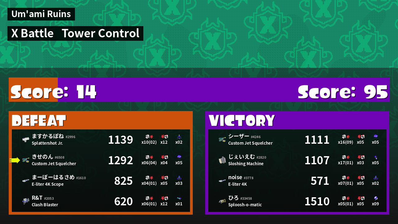 | Mode | Tower Control - X Battle | ||