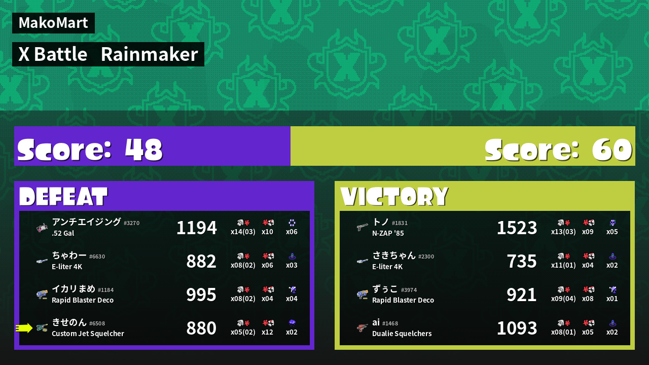 | Medals | #1 Rainmaker Carrier #1 Ink Storm User #2 Score Booster | ||