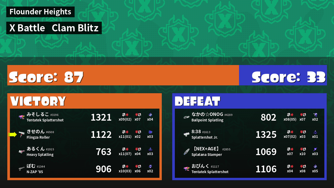 | Mode | Clam Blitz - X Battle | ||
