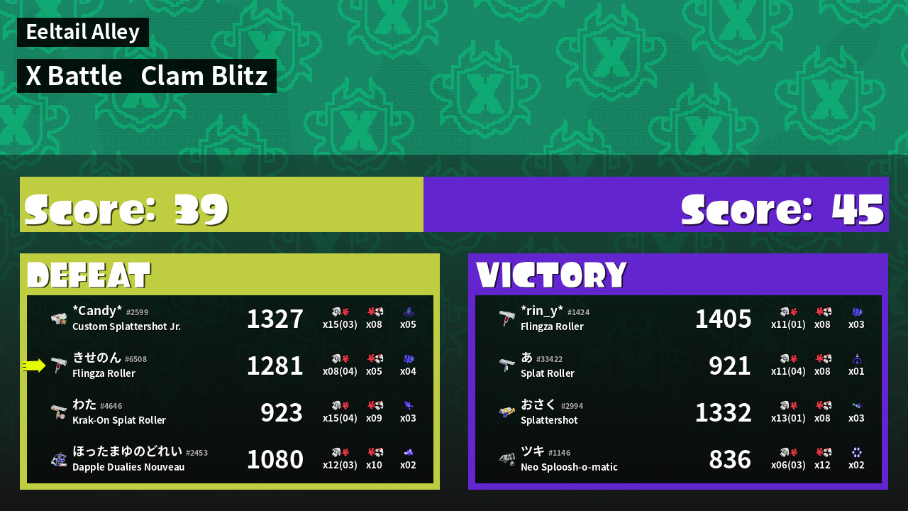 | Mode | Clam Blitz - X Battle | ||