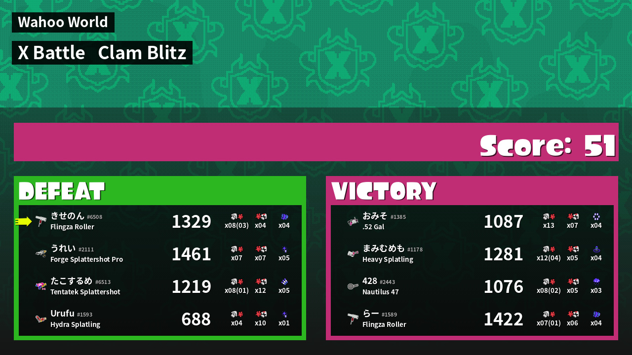 | Weapon | Flingza Roller ( Ink Mine / Tenta Missiles) | ||