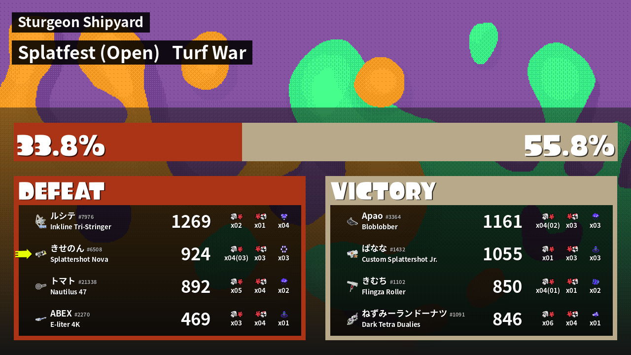 | Medals | #1 Home-Base Inker #1 Super Jump Spot #1 Splat Assister | ||