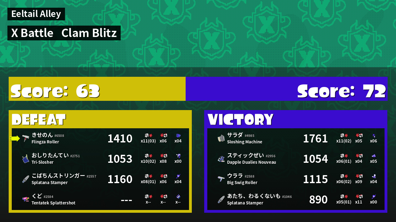 | Mode | Clam Blitz - X Battle | ||