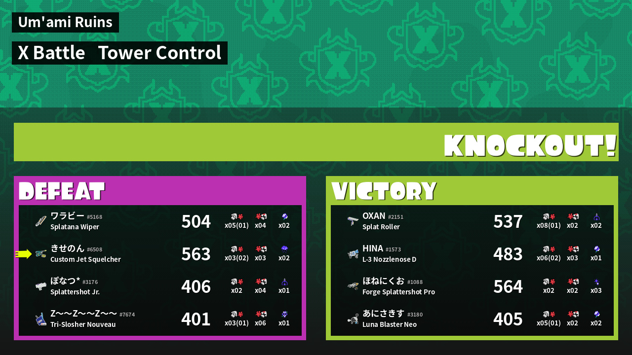 | Mode | Tower Control - X Battle | ||