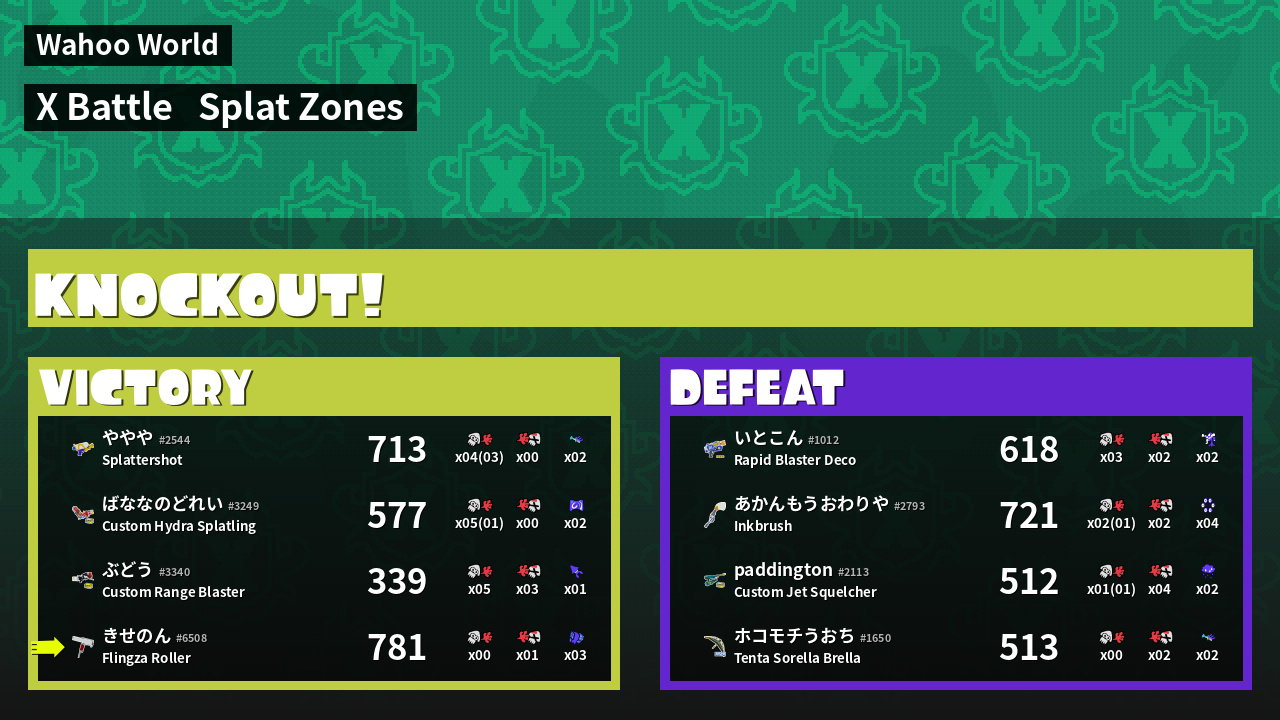 | Mode | Splat Zones - X Battle | ||