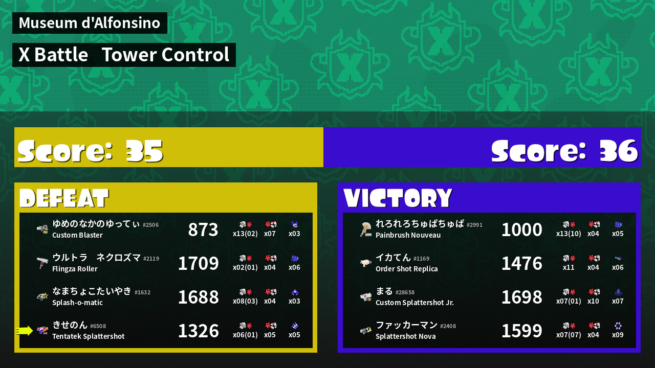 | Medals | #1 Tower Stopper #1 Triple Inkstrike User #2 Enemy Splatter | ||