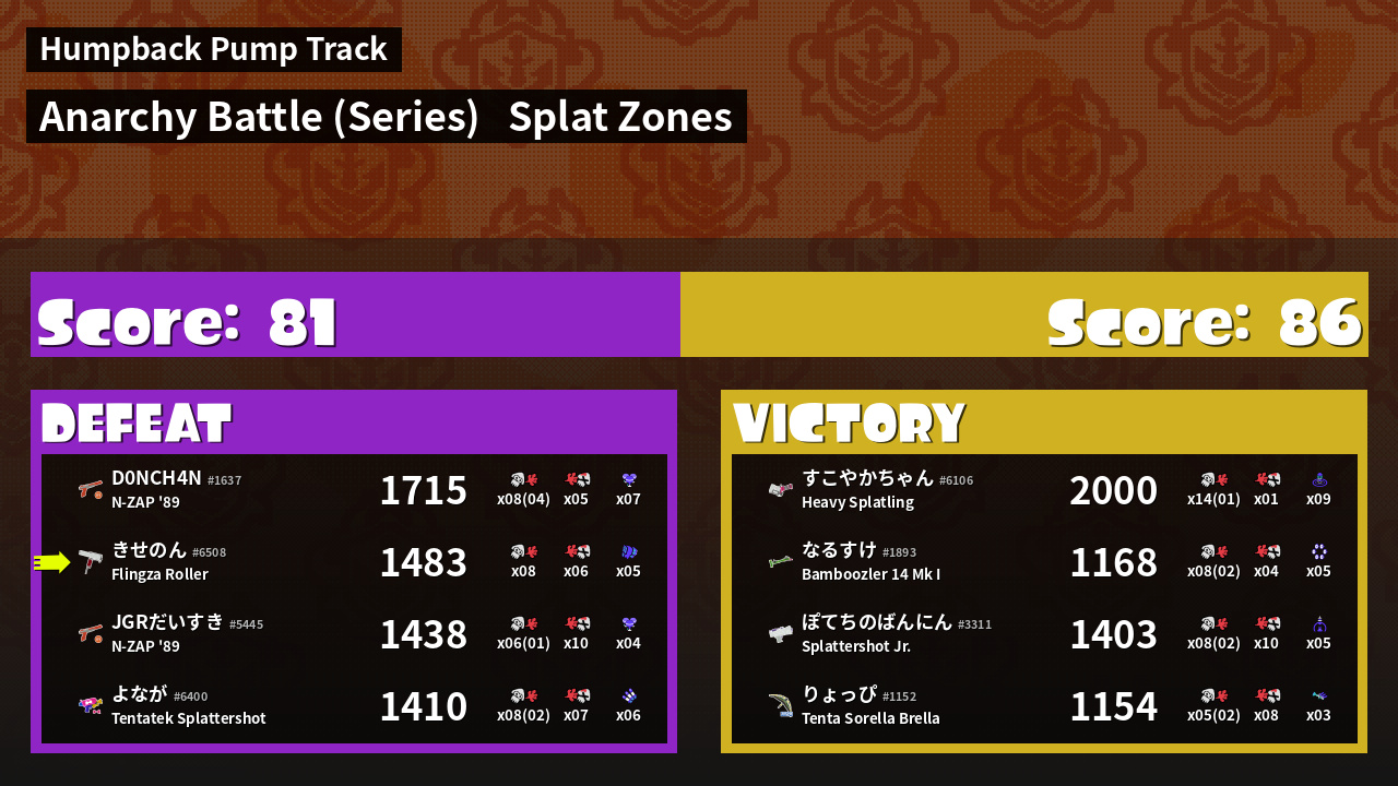 | Mode | Splat Zones - Anarchy Battle (Series) | ||