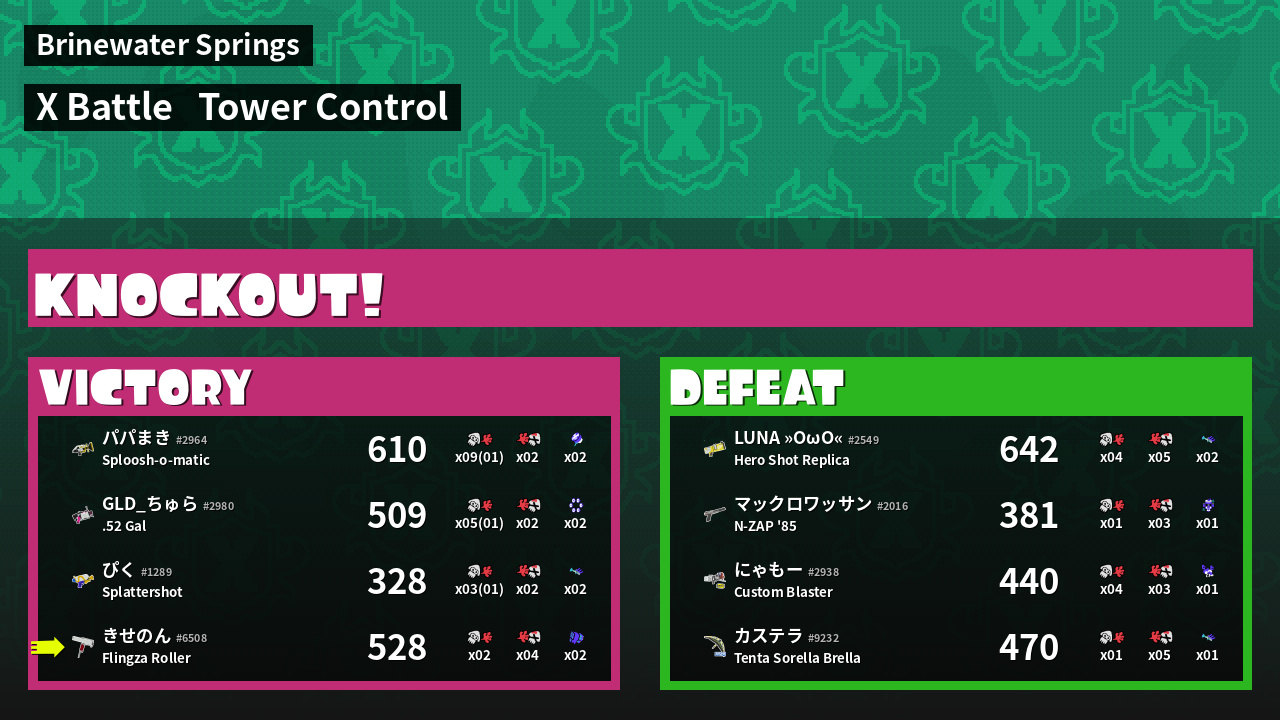 | Weapon | Flingza Roller ( Ink Mine / Tenta Missiles) | ||
