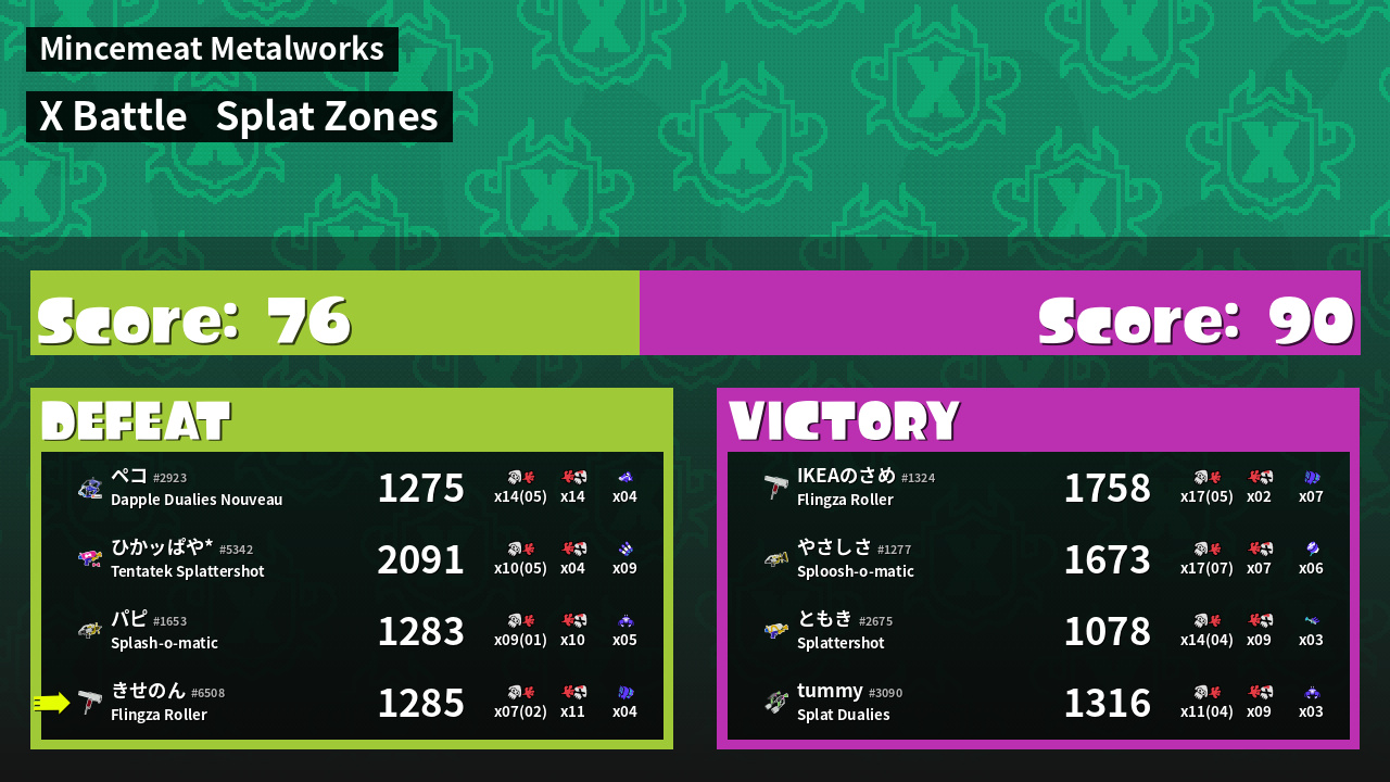 | Mode | Splat Zones - X Battle | ||