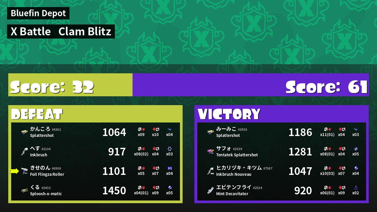 | Mode | Clam Blitz - X Battle | ||