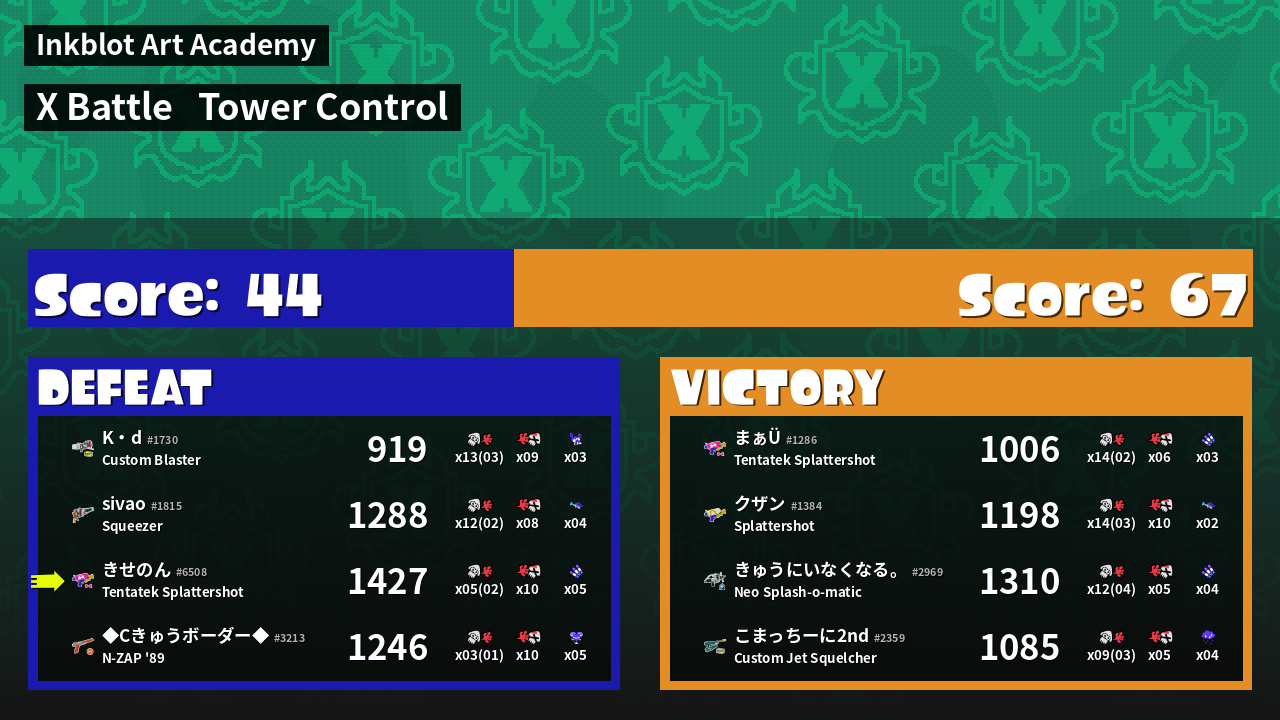 | Weapon | Tentatek Splattershot ( Splat Bomb / Triple Inkstrike) | ||