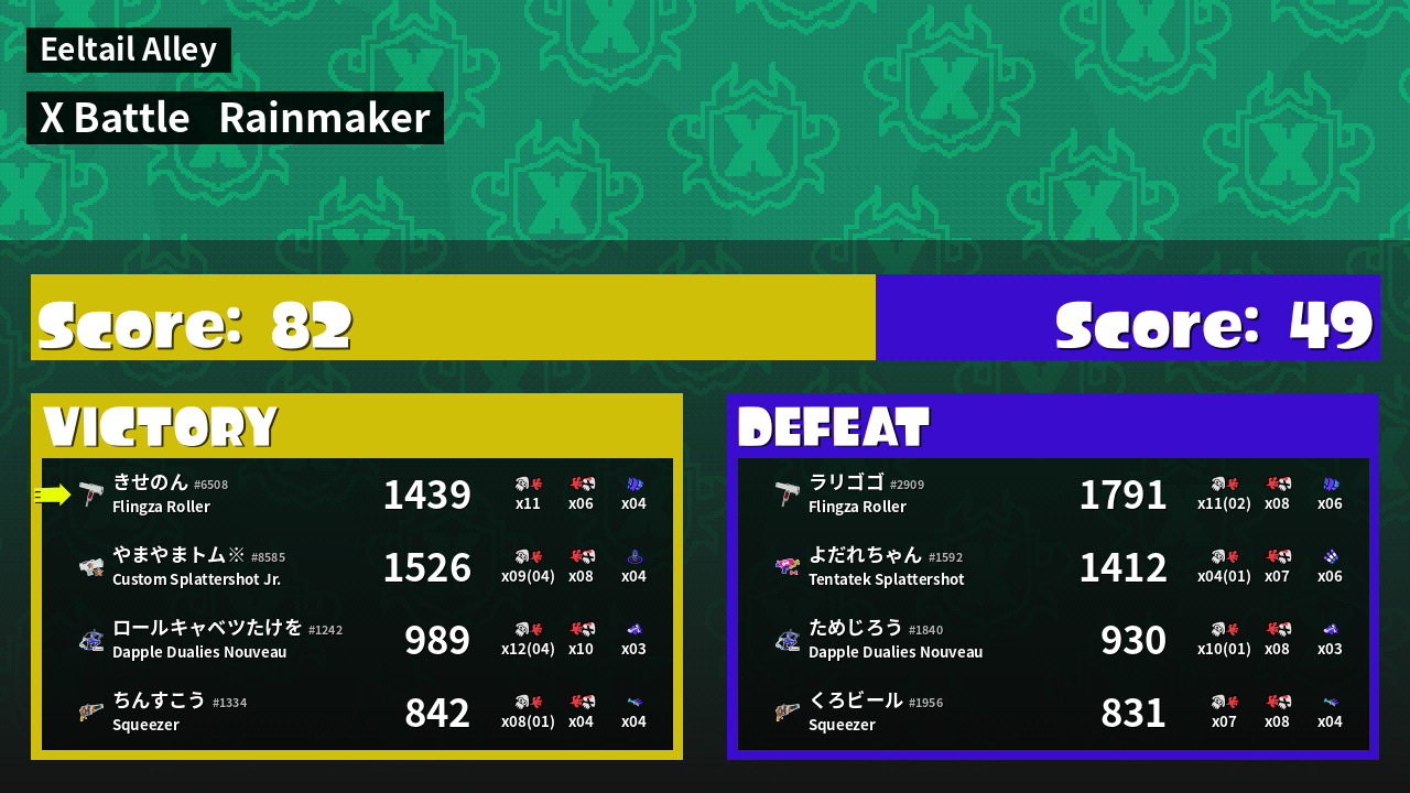 | Weapon | Flingza Roller ( Ink Mine / Tenta Missiles) | ||