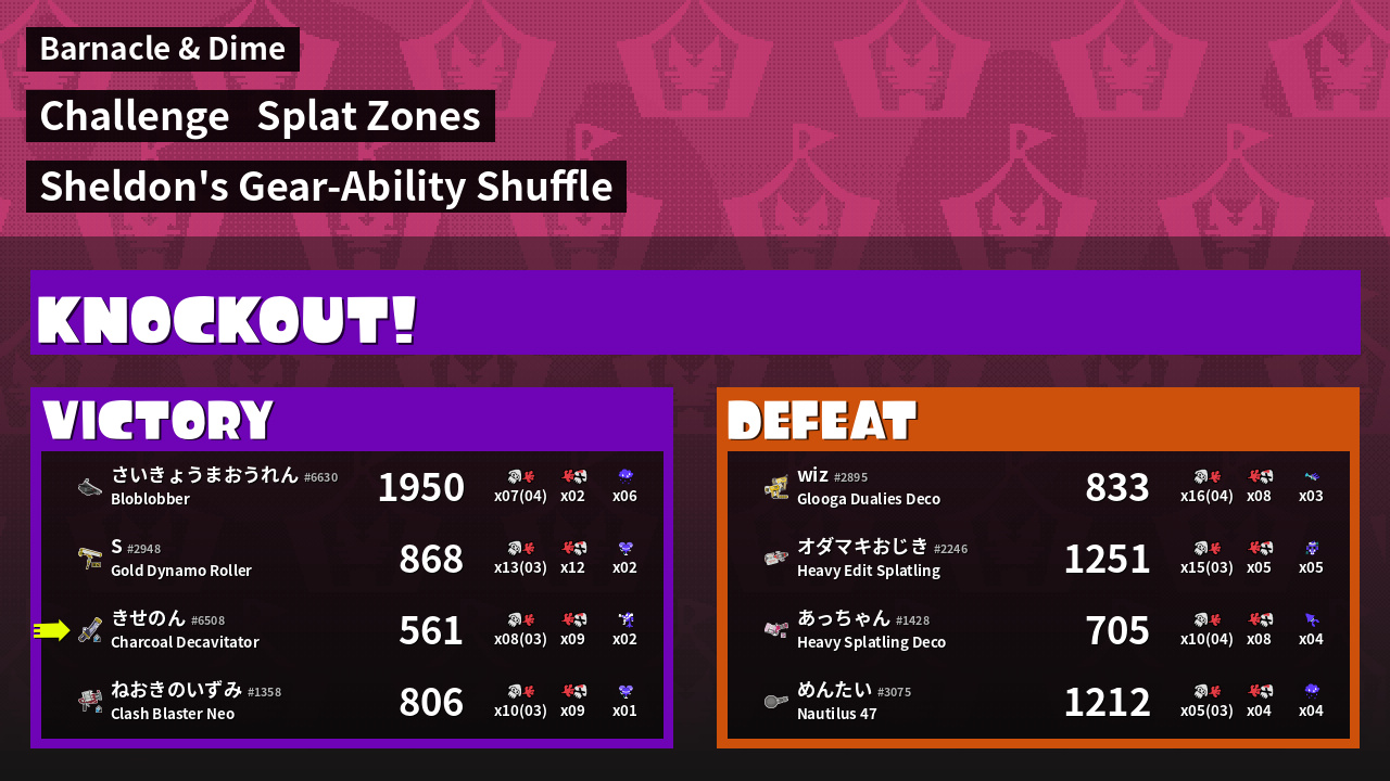 | Medals | #1 Splat Zone Guard #1 Ground Traveler #1 Damage Taker | ||
