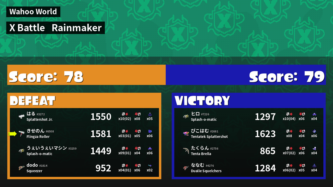 | Mode | Rainmaker - X Battle | ||