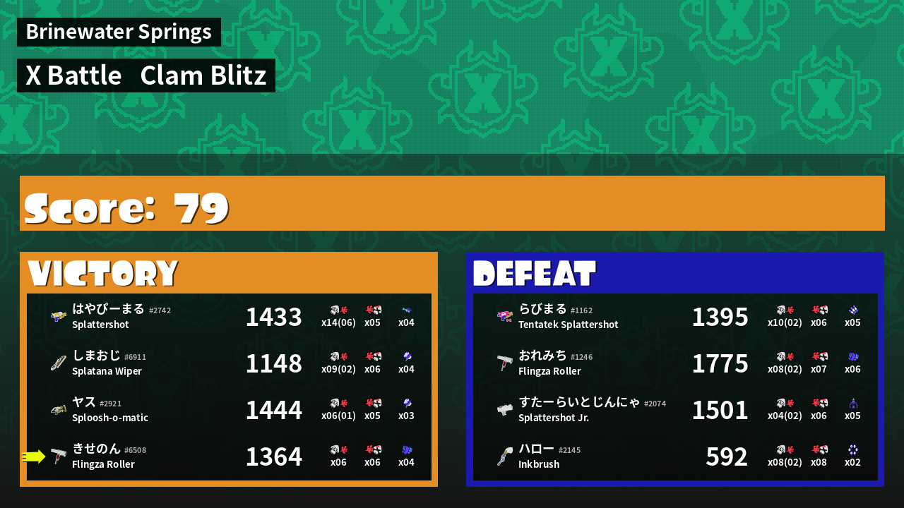 | Mode | Clam Blitz - X Battle | ||