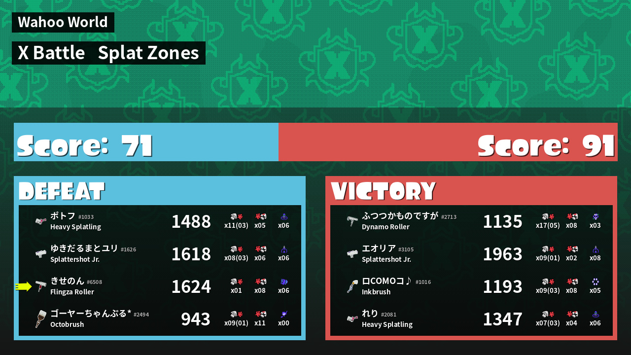 | Weapon | Flingza Roller ( Ink Mine / Tenta Missiles) | ||