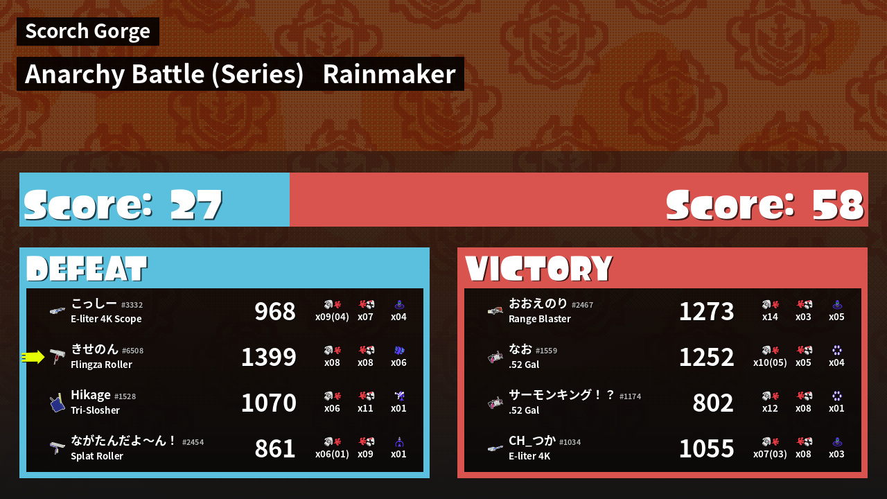 Results of きせのん's Battle