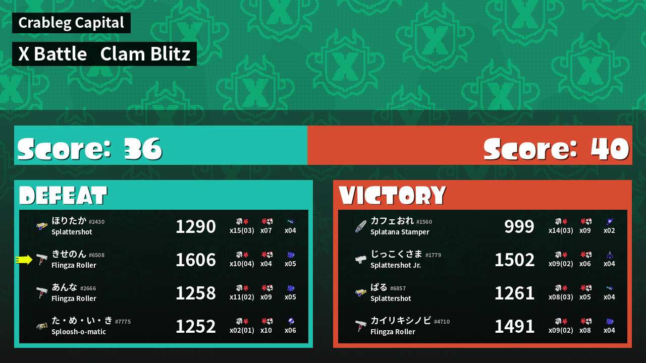 | Weapon | Flingza Roller ( Ink Mine / Tenta Missiles) | ||