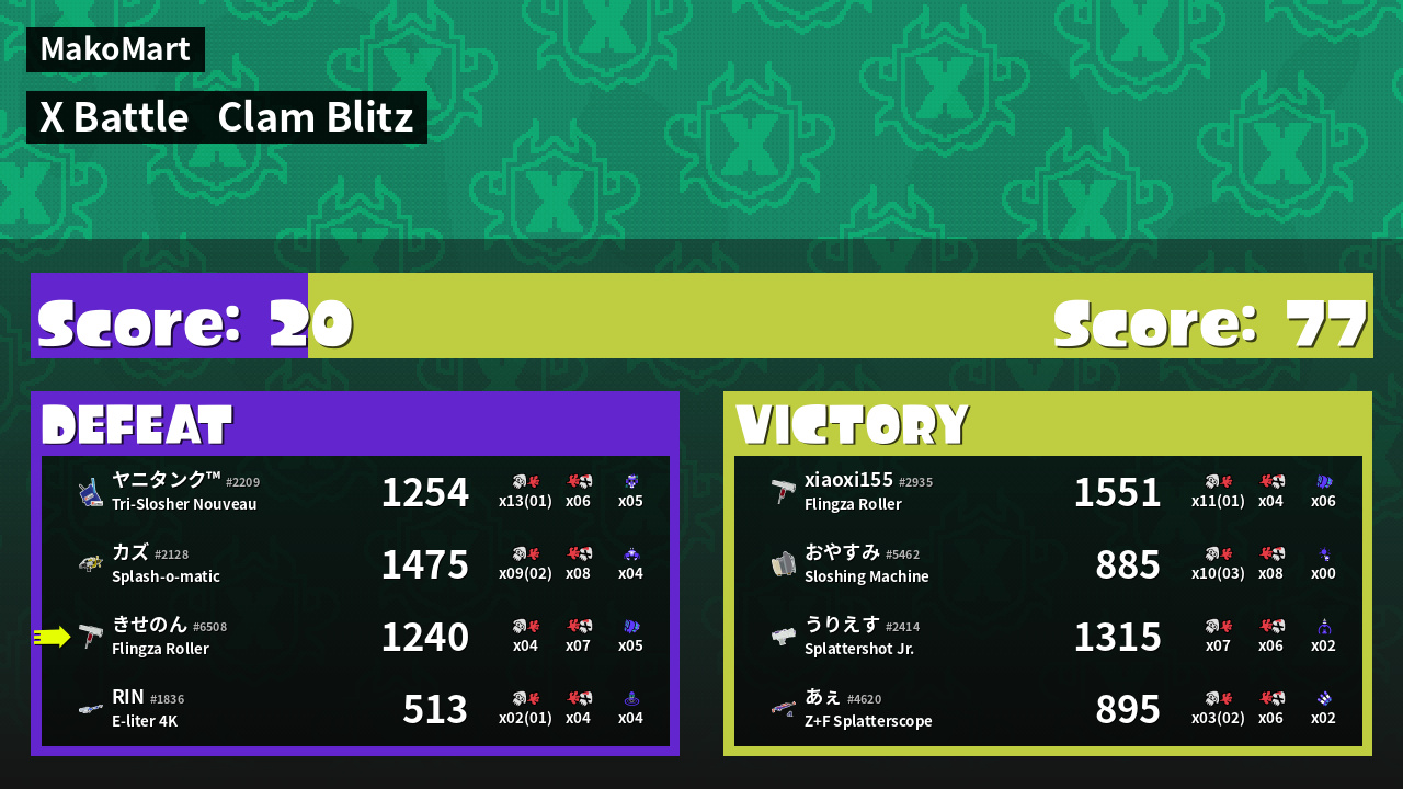 | Mode | Clam Blitz - X Battle | ||