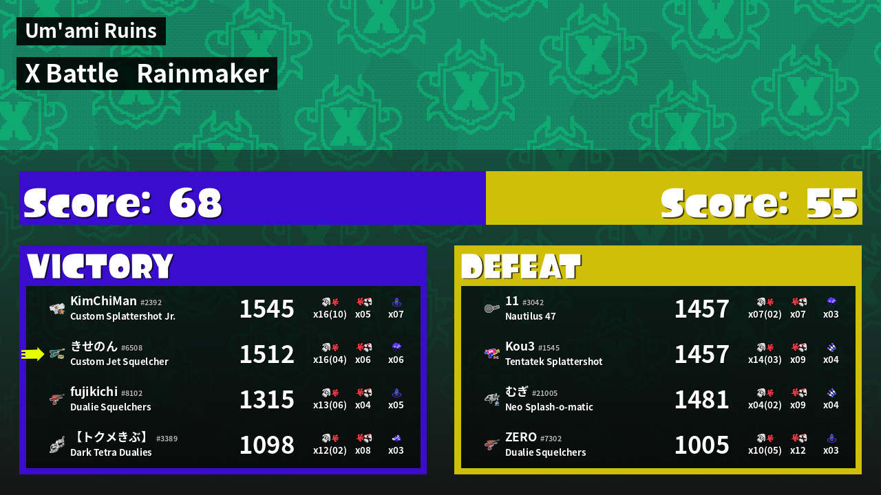 | Mode | Rainmaker - X Battle | ||