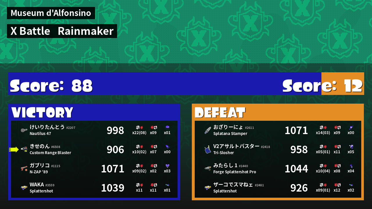 | Mode | Rainmaker - X Battle | ||