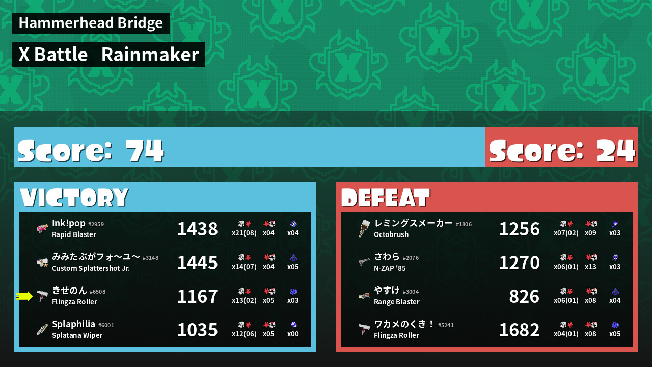 | Mode | Rainmaker - X Battle | ||