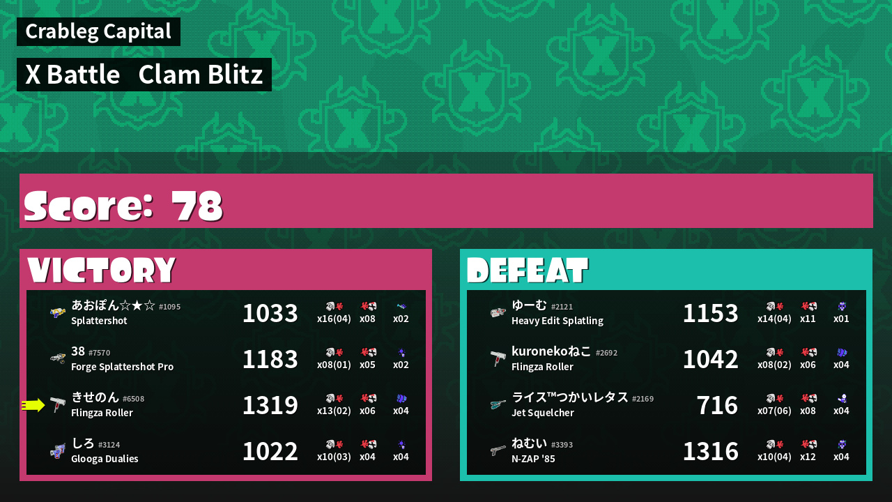 | Mode | Clam Blitz - X Battle | ||