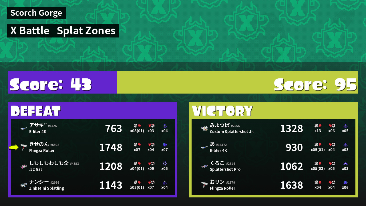| Mode | Splat Zones - X Battle | ||