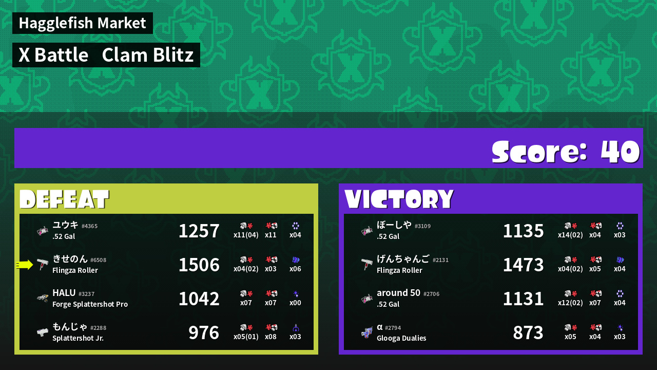 | Mode | Clam Blitz - X Battle | ||