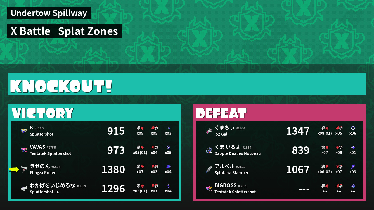 | Mode | Splat Zones - X Battle | ||