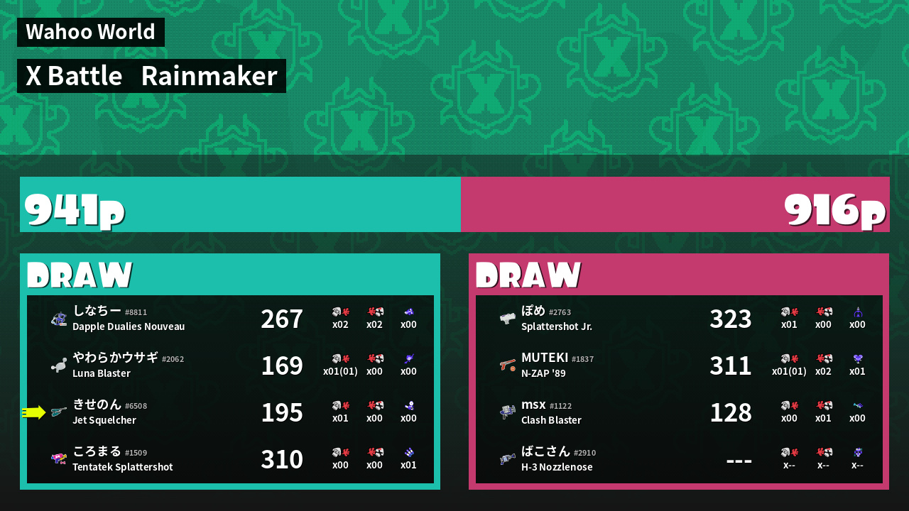 | Mode | Rainmaker - X Battle | ||