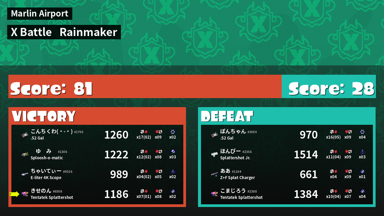 | Mode | Rainmaker - X Battle | ||