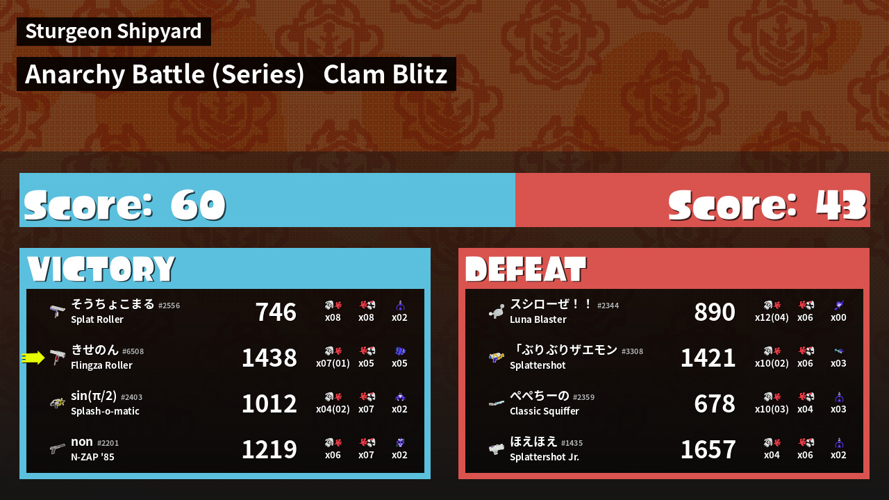 | Mode | Clam Blitz - Anarchy Battle (Series) | ||